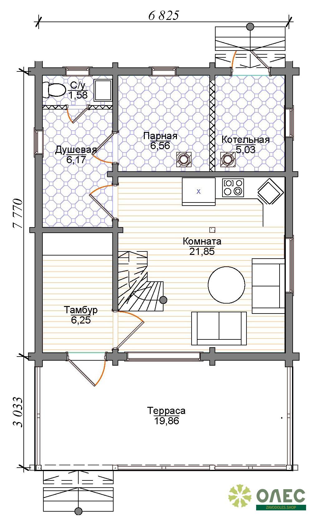 Площадь: 78 м² Этажность: 1 Количество спален: 1 Материал: Клееный брус Главное, выберите внешний вид дома, а площадь любого проекта можно увеличить либо уменьшить так, как вы хотите. ◍ Комплектация: ☑ ДОМОКОМПЛЕКТ: □ СТЕНЫ: Стены клееный брус 185мм(h)х200мм, заводская зарезка чаш с ветрозащитным карманом, изготовленные согласно проекту, для сборки «как конструктор» на участке. Клеевая система AkzoNobel; □ ПЕРЕКРЫТИЯ: Подвенечный оклад, Балки перекрытия; □ СТРОПИЛЬНАЯ СИСТЕМА: Стропильная система согласно проекту, обрешетка сухая строганая 25x90мм, контробрешетка сухая строганая 45x45мм; □ Упаковка в специальную защитную пленку. ☑ ФУНДАМЕНТ: □ Монолитная ж/б плита 250мм; □ Бетон класса В25 (марка М350); □ Двойная сетка армирования, ячейка 250мм, арматура А500 d12мм; □ Песчаная подушка с послойным трамбованием; □ Гидроизоляционная мембрана Плантер; □ Закладные под инженерные коммуникации. ☑ СТЕНЫ: □ Проектная документация; □ Подкладная доска сухая строганная антисептированная с гидроизоляцией; □ Брус клееный хвойных пород сечение 185мм(h)х200мм, клееные балки; □ Межвенцовое утепление Политерм; □ Заводская зарезка чаш с ветрозащитным карманом и рассверловка под скрытую электрику; □ Монтаж с использованием пружинных узлов и оцинкованных комплектующих; □ Балки перекрытия сухие строганные (опционально клееные); □ Утепленные обсадные системы клееные. □ Окна 70мм профиль, 2х камерные стеклопакеты с аргоновым наполнением и напыление от УФ излучения и теплопотерь. ☑ КРОВЛЯ □ Стропильная система доска сухая строганная антисептированная (опционально клееная); □ Пароизоляционная мембрана Delta Dawi GP; □ Утепление 250мм с контрутеплением, каменная вата Юматекс Термо InWall; □ Супердиффузионная мембрана Tyvek Soft; □ Металлочерепица 0.5мм Grand line (опционально Клик Фальц GL Pro, ЦПЧ Braas, гибкая черепица Шинглас); □ Снегозадержатели, водосточная система Grand Line, металл; Стоимость, скидки и доп. комплектацию, уточняйте у нашего менеджера: 8 (922) 187-71-11